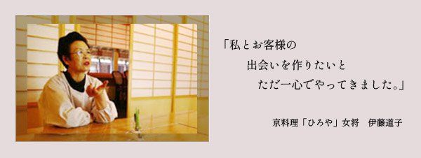 器にこだわったり、お店のレイアウトにこだわったりするのは、儲けたいという事ではなく、こういう場で私とお客様の出会いを作りたいと、ただ一心でやってきました。 主人はこの間亡くなりましたが、おっとりしていて私が何をしようと黙って私にやらせてくれました。手間隙と原価をかけていること素材に凝っていること京都から特殊なものを取り入れてやっているので、私の自己満足みたいで商売抜きにしてこの値段でやってきました。
