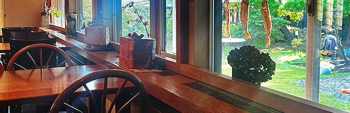 広い店内と窓の外には日本庭園が皆様のお越しをお待ち申し上げます。